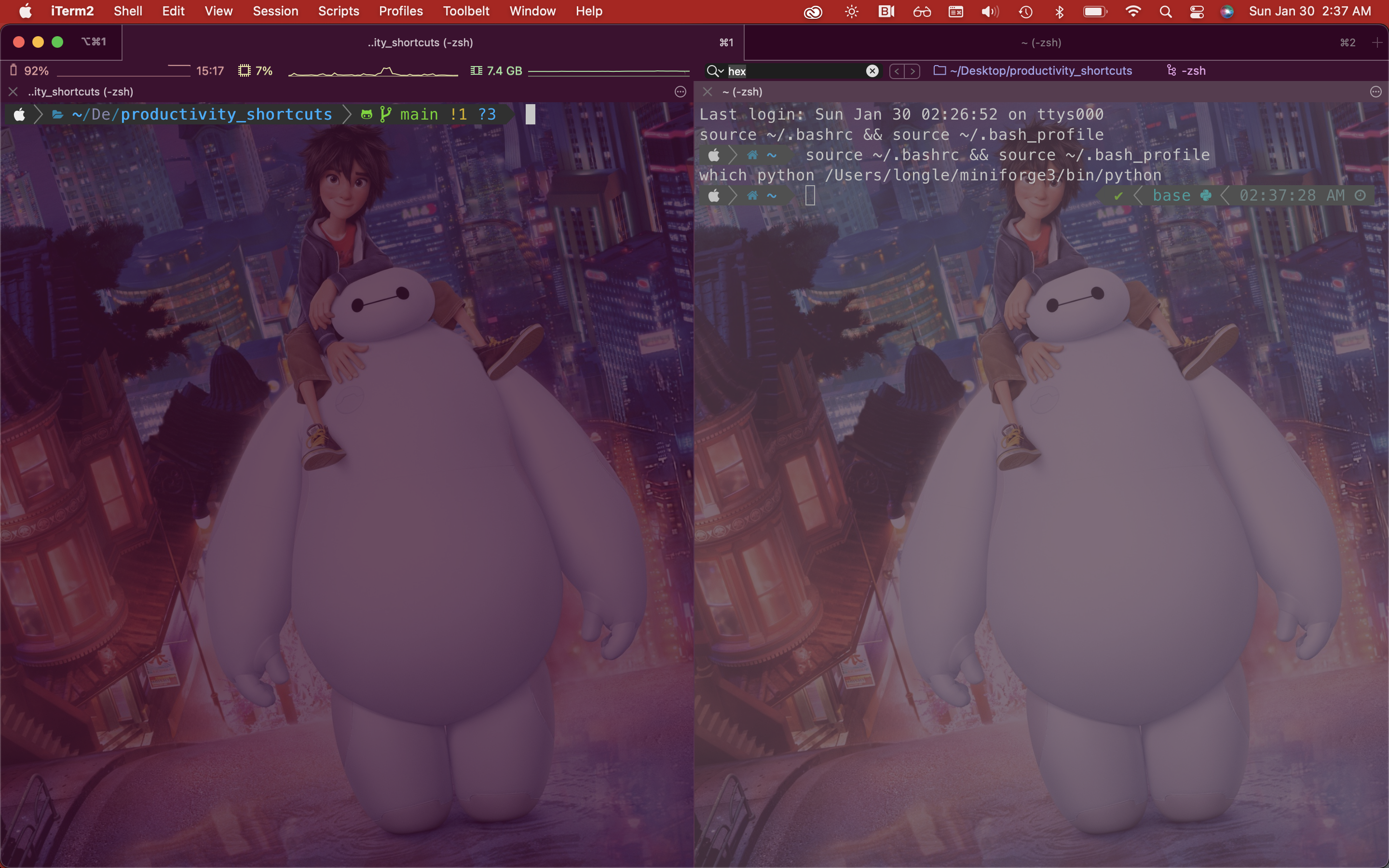 Ctrl + hto open use hotkey window- Set background image randomly. Download file from https://github.com/jamsyoung/iterm2-random-background to