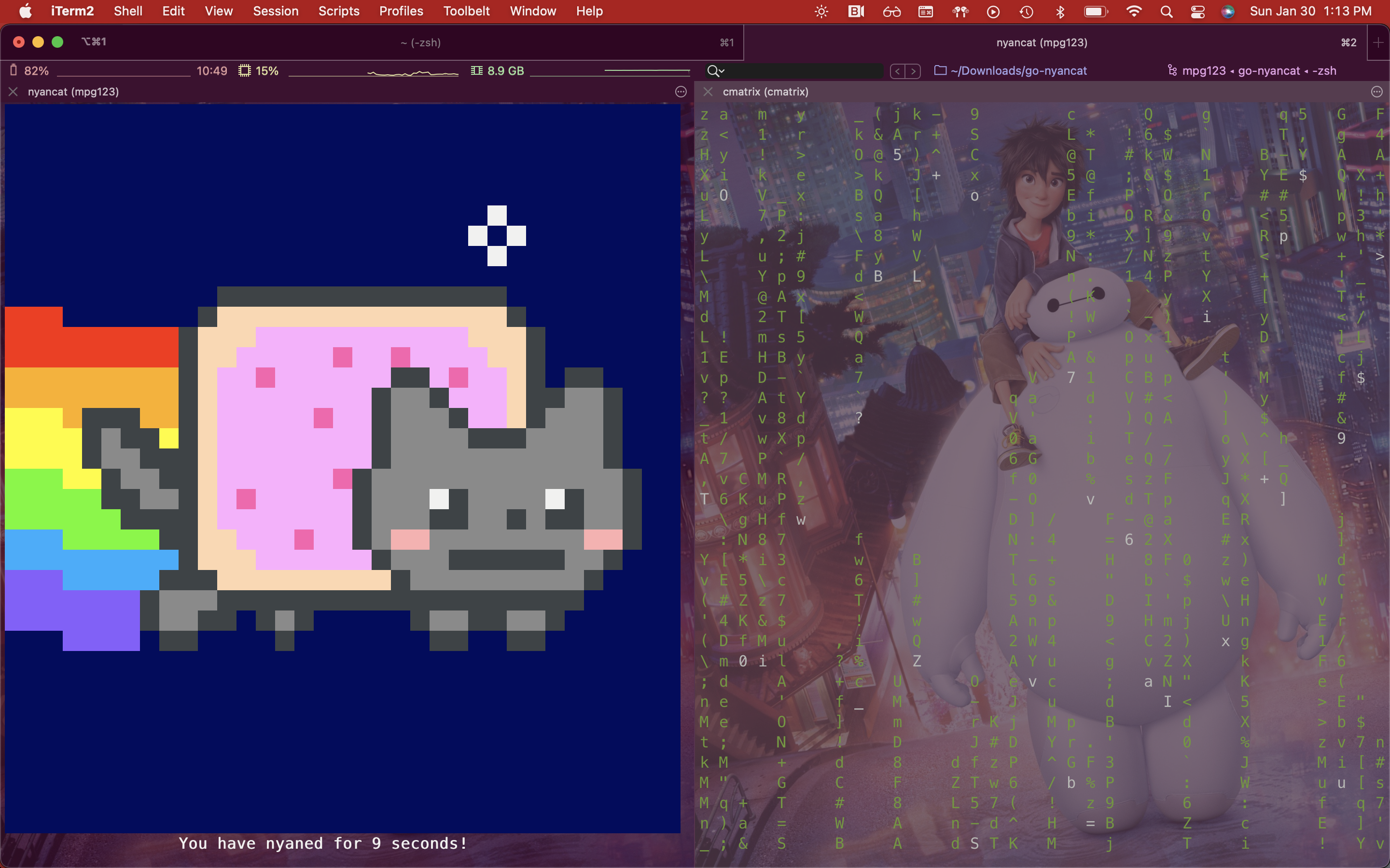- go-nyancat https://github.com/NARKOZ/go-nyancat. Then use